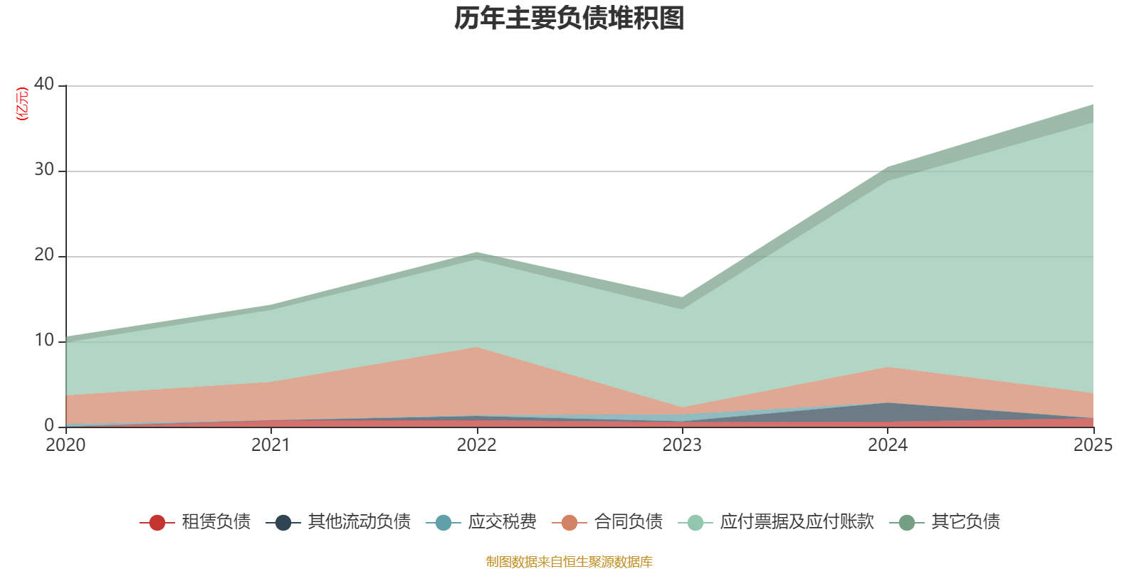 负债重大变化方面,截至2025年末,公司应付票据及应付账款较上年末增加45.36%,占公司总资产比重上升8.37个百分点;其他流动负债较上年末减少98.96%,占公司总资产比重下降2.52个百分点;合同负债较上年末减少29.85%,占公司总资产比重下降1.7个百分点;租赁负债较上年末增加66.86%,占公司总资产比重上升0.36个百分点。