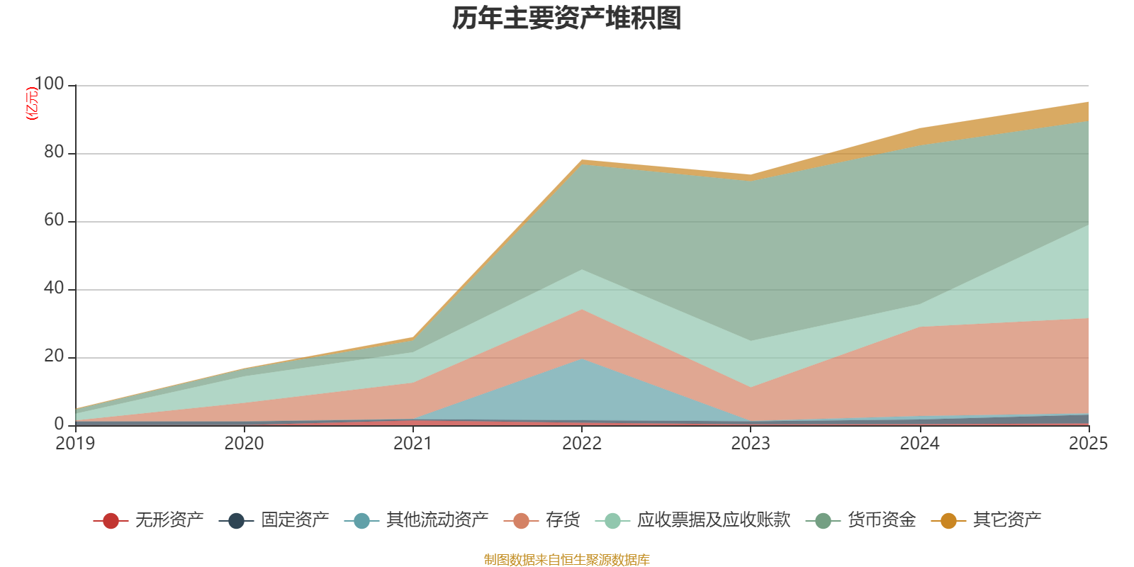 资产重大变化方面,截至2025年末,公司货币资金较上年末减少34.66%,占公司总资产比重下降21.38个百分点;应收票据及应收账款较上年末增加312.59%,占公司总资产比重上升21.29个百分点;开发支出较上年末增加320.22%,占公司总资产比重上升1.95个百分点;在建工程合计较上年末减少90.19%,占公司总资产比重下降1.26个百分点。