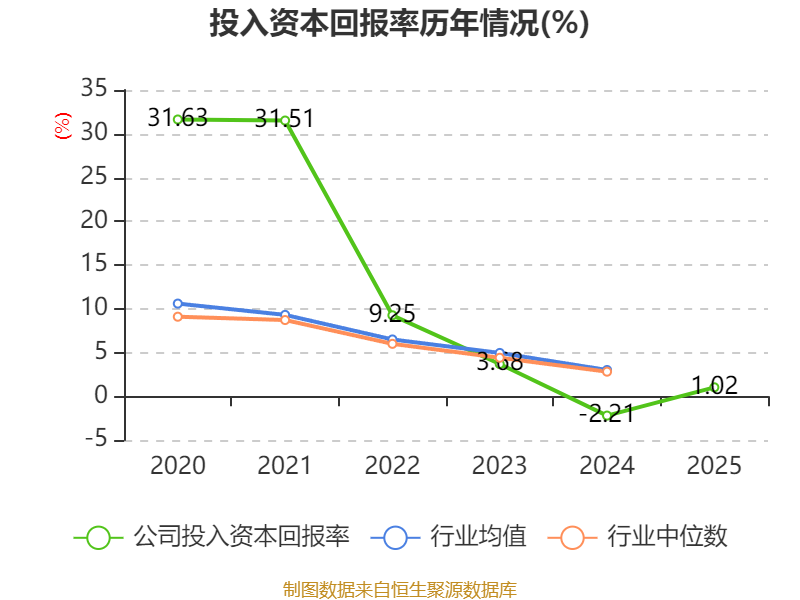 数据显示,2025年公司加权平均净资产收益率为1.55%,较上年同期上升2.49个百分点。公司2025年投入资本回报率为1.02%,较上年同期上升3.23个百分点。