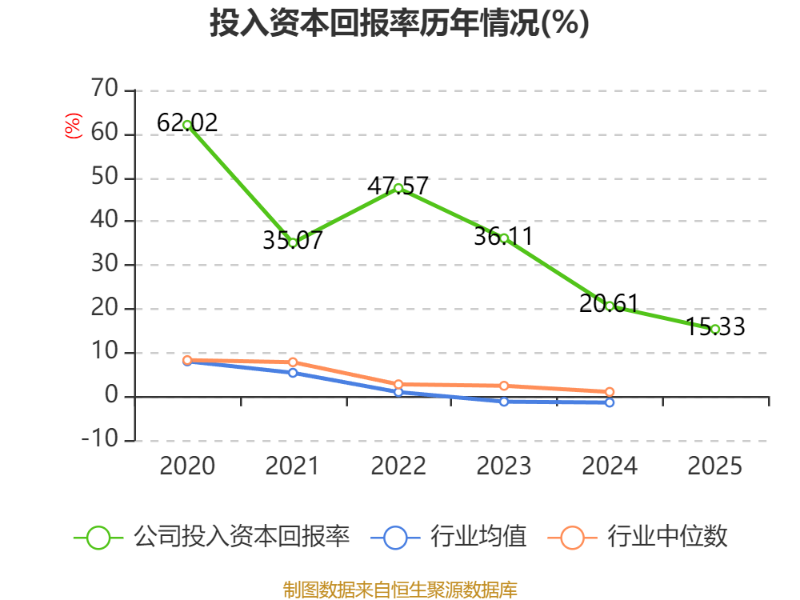 数据显示,2025年公司加权平均净资产收益率为16.38%,较上年同期下降10.14个百分点。公司2025年投入资本回报率为15.33%,较上年同期下降5.28个百分点。