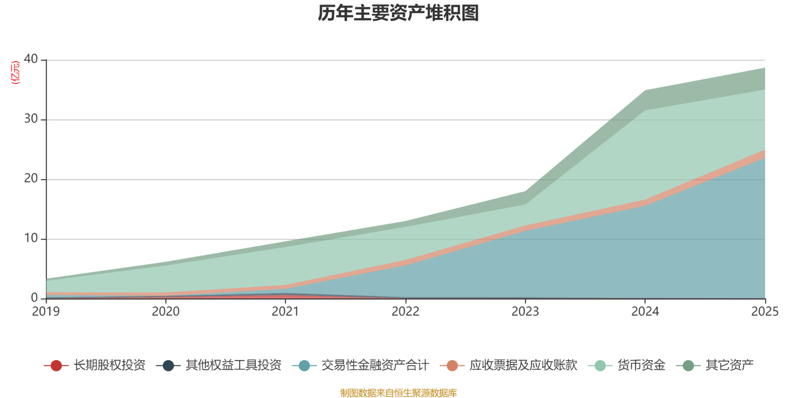 资产重大变化方面,截至2025年末,公司货币资金较上年末减少32.71%,占公司总资产比重下降16.83个百分点;交易性金融资产合计较上年末增加52.12%,占公司总资产比重上升16.51个百分点;固定资产较上年末减少31.78%,占公司总资产比重下降1.57个百分点;无形资产较上年末增加78.09%,占公司总资产比重上升0.84个百分点。