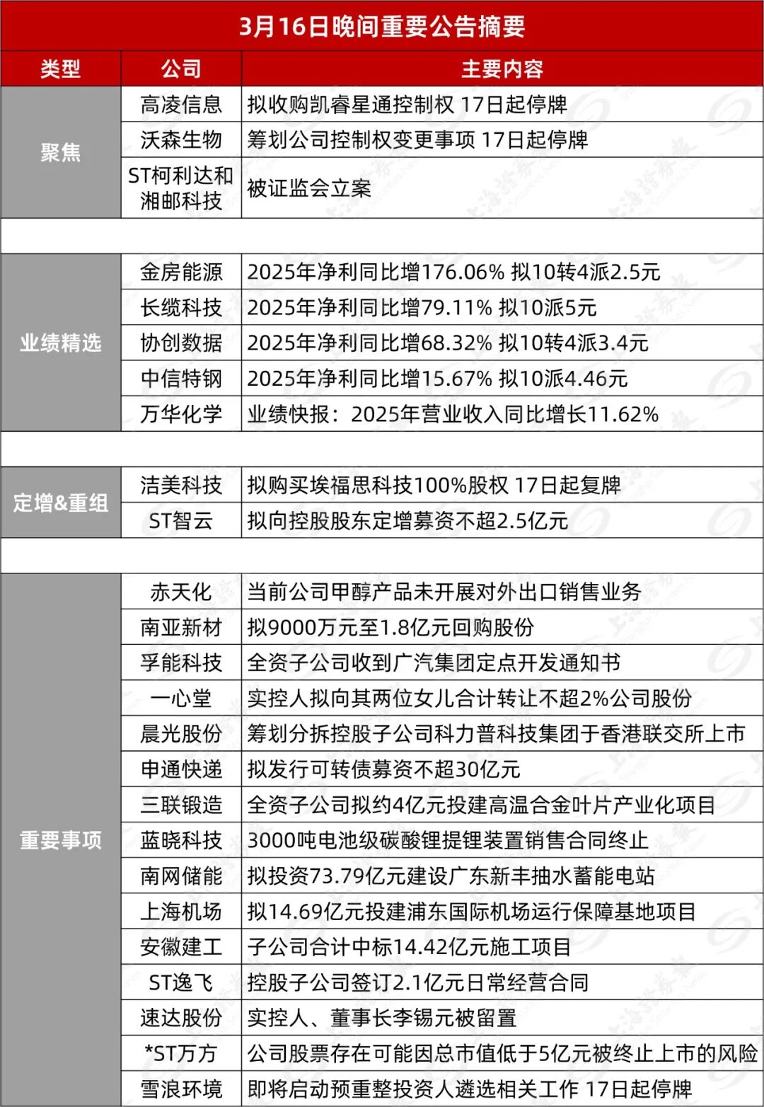 ST智云:披露2026年度向特定对象发行股票预案。本次发行对象为公司控股股东慧达富能,发行价格为6.59元/股,募集资金总额不超过2.5亿元,扣除相关发行费用后的募集资金净额拟全部用于补充流动资金。